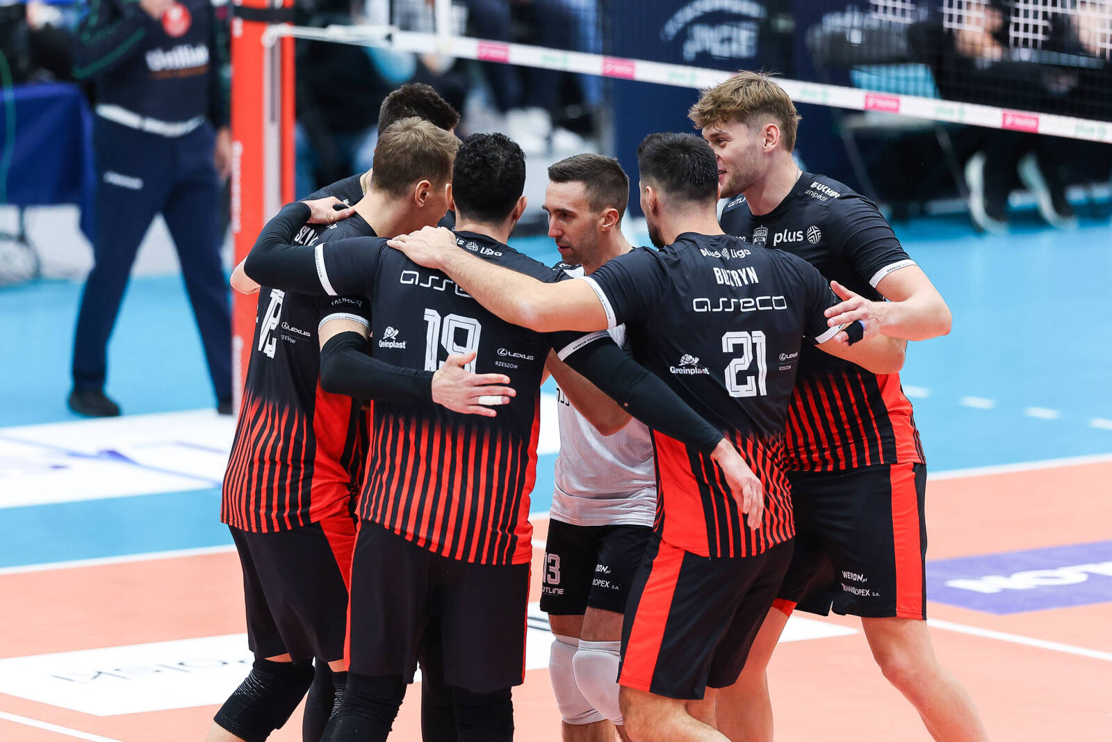 Asseco Resovia Rzeszów: Demyanenko, Szalpuk, Cebulj, Janusz, Butryn, Potera (libero) oraz Louati, Bucki, Vasina, Zatorski.
