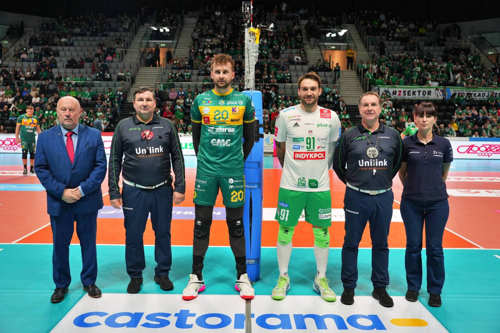 Aluron CMC Warta Zawiercie: Kwolek, Russell, Zniszczoł, Bołądź, Tavares, Bieniek, Popiwczak (libero) oraz Nowosielski, Markiewicz, Ensing, Łaba.