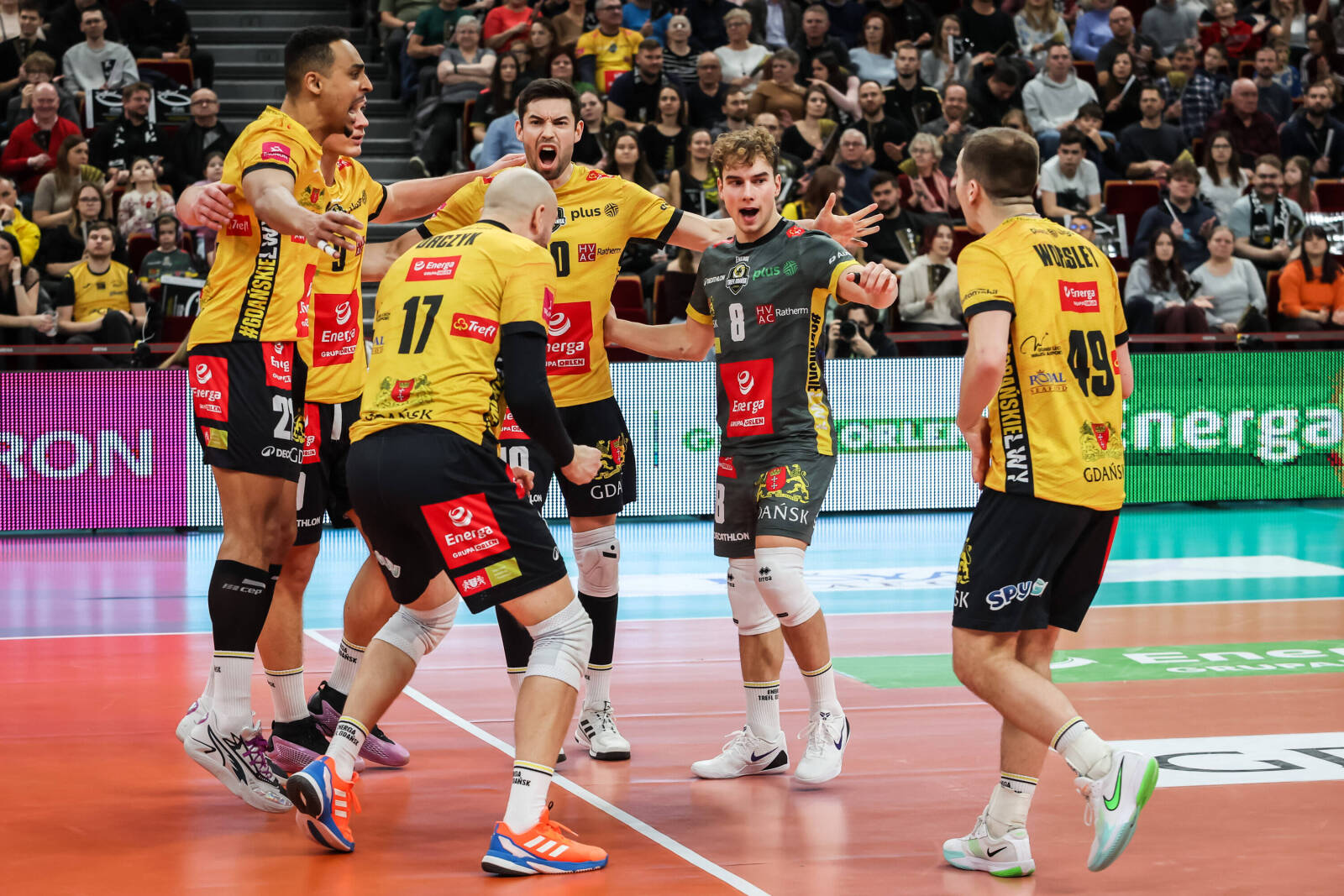 Energa Trefl Gdańsk: Nowakowski, Nasevich, Brand, Orczyk, M’Baye, Worsley, Koykka (libero) oraz Kogut, Sobański, Schulz.