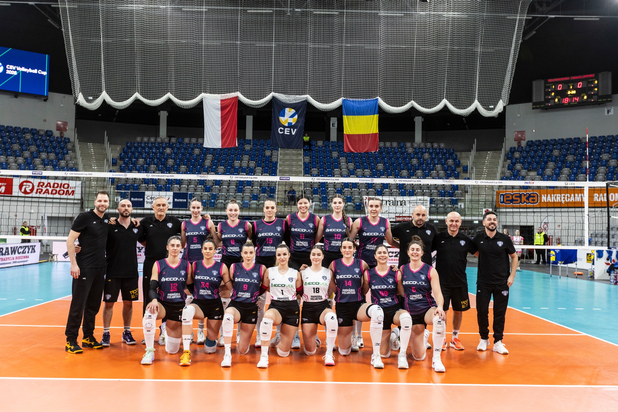 Mecz 1/8 finału Pucharu CEV od pierwszych piłek był bardzo wyrównany, co tylko potwierdzało rangę tego spotkania. Oba zespoły wymieniały się prowadzeniem – 2:4, 8:7 – i długo żaden z nich nie potrafił przejąć wyraźnej inicjatywy. Z czasem Radomianki zaczęły podkręcać tempo gry, odskakując rywalkom na kilka punktów – 12:8. Rumunki nie dały się jednak zaskoczyć i szybko odrobiły straty, doprowadzając do remisu 14:14. Chwilę później znów na prowadzeniu znalazły się gospodynie – 18:14 – które konsekwentnie realizowały swój plan gry. Za stery w ofensywie odpowiadały Monika Gałkowska oraz Dagmara Dąbrowska, skutecznie kończąc kolejne akcje. Choć Voluntari próbowało jeszcze szarpać w końcówce, pierwszy set padł łupem Radomki – 25:23.